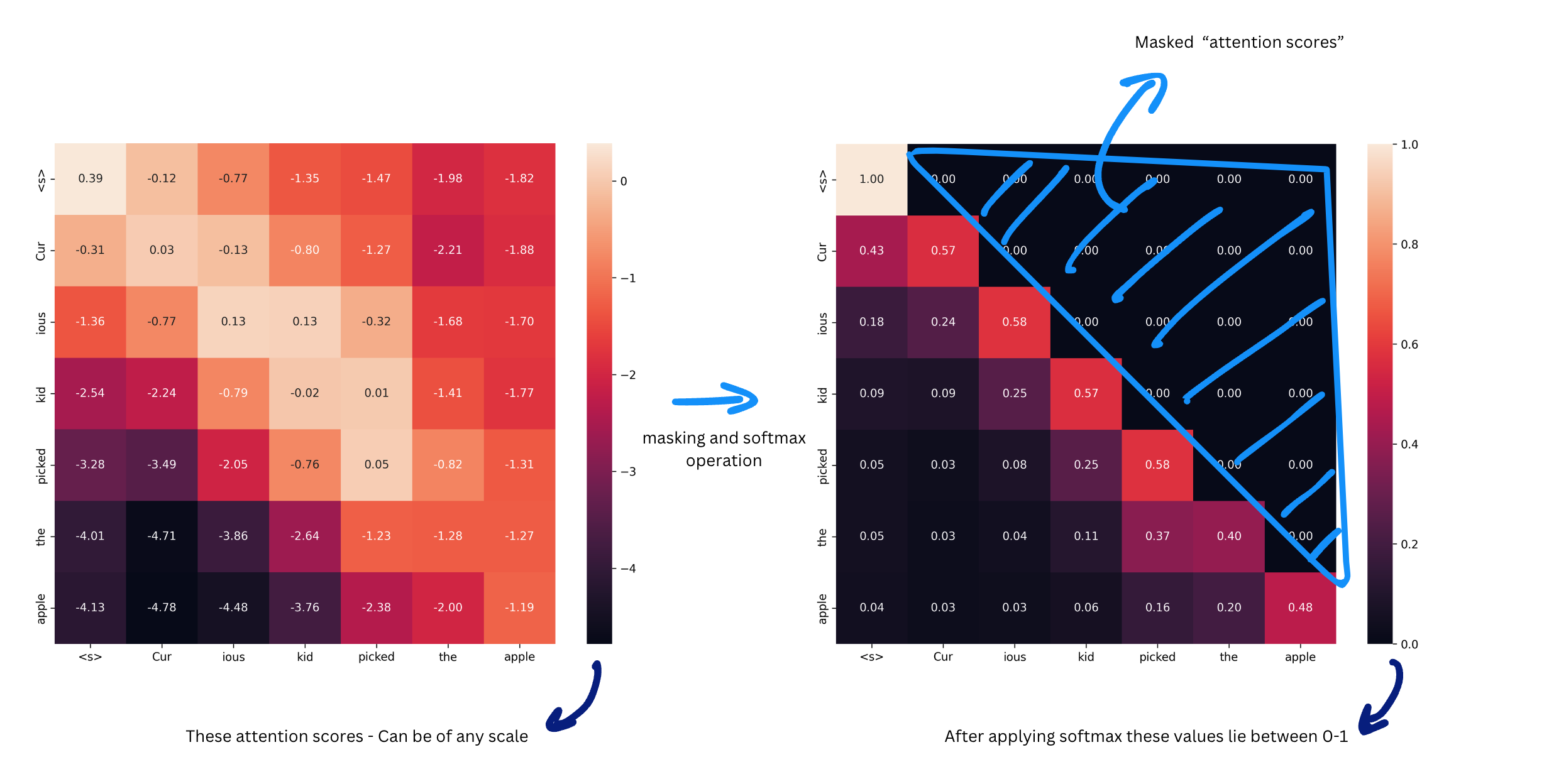 By now we have some overall understanding about the overall flow of attention using q, k, v matrices. Let us touch on some of the steps that were skipped in the above section.