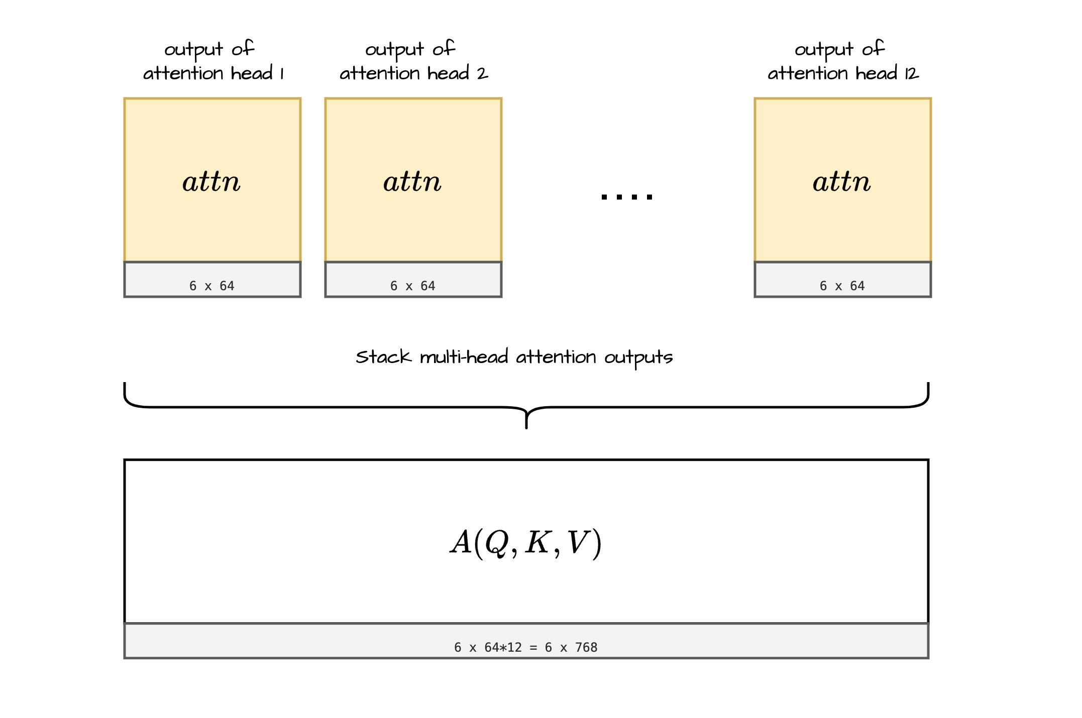 NOTE - One important thing to notice here is the output of attention block is of the same shape that we began with [6 x 768].
