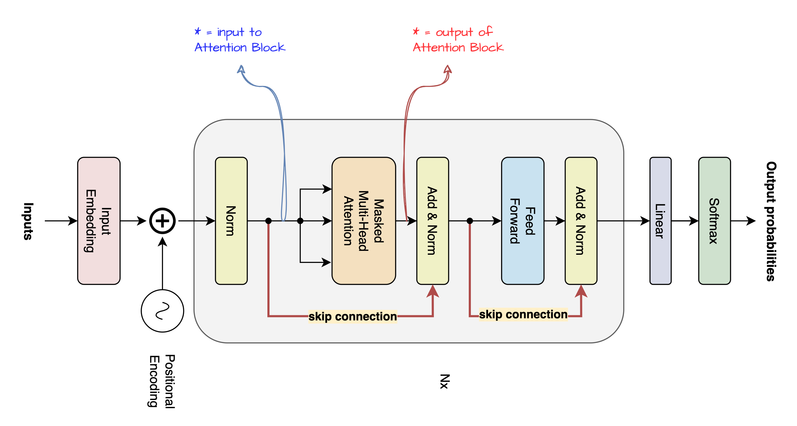 We have covered quite some ground now, we are currently at output of Attention Block it is important that you look at input to Attention Block as well, as both of these will be used in this step, it is the skip connection that enables usage of previous information.