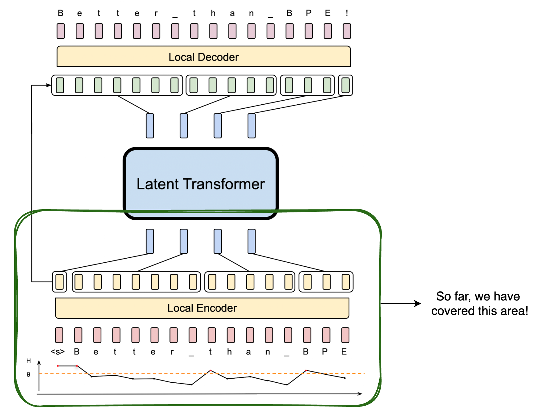 Most importantly, we have seen how BLT uses a lightweight local encoder to compress information and pass it on to the latent global transformer model, this is the key reason for BLT's significant performance gains over tokenizer-based models.