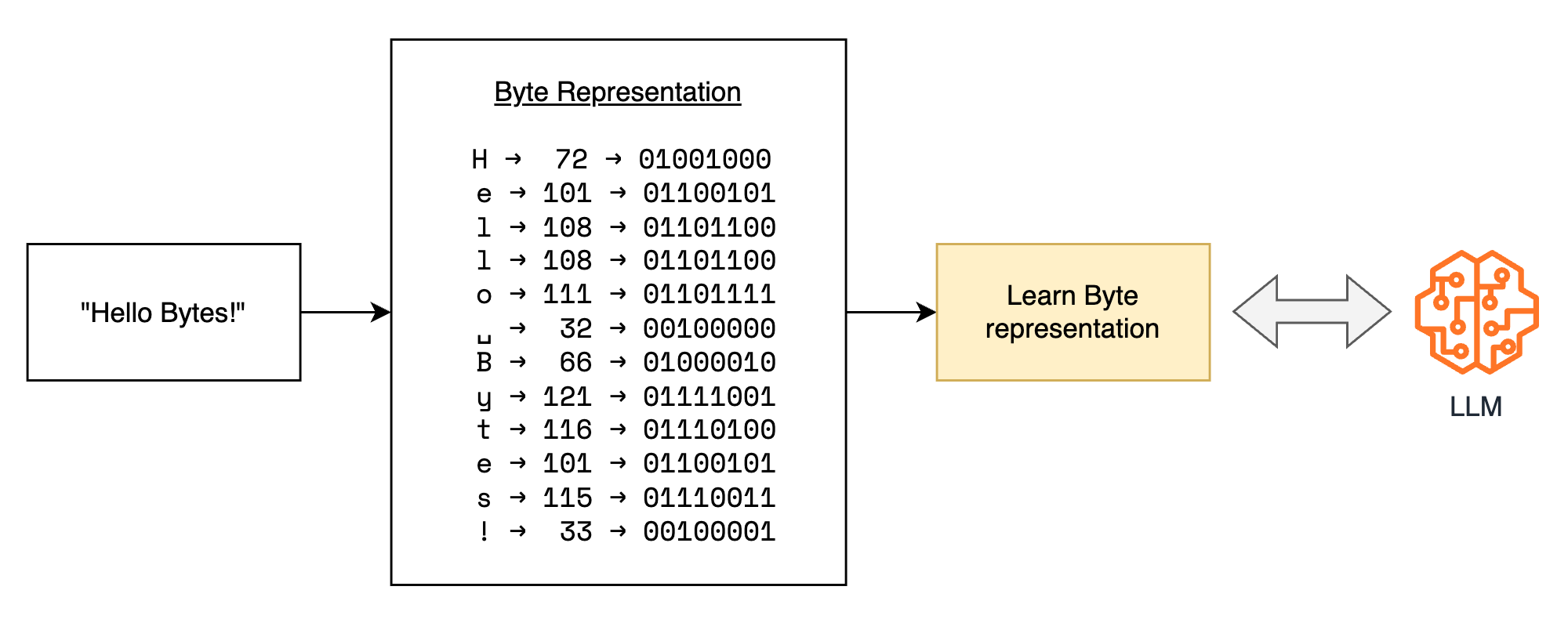 Whereas in the case of Byte-based systems, there is no concept of vocabulary as such. The real tricky part in tokenizer-free systems is how we make splits between the raw byte streams, more on that later.