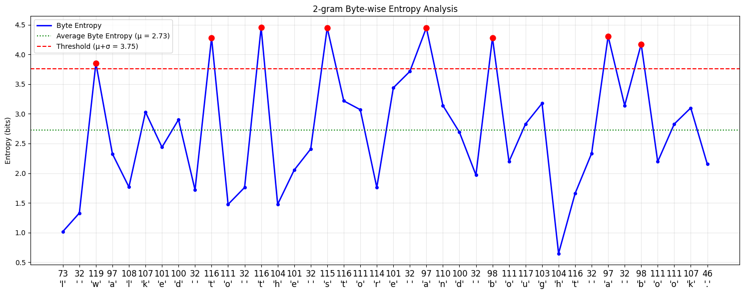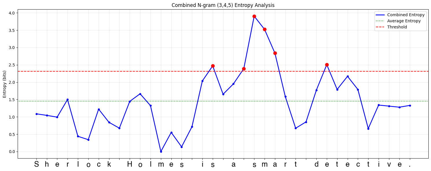 "Sherlock Holmes"is being combined into a single patch, this is because the entropy values are very low for the word"Sherlock Holmes"and the bytes forming this word frequently occur together in the corpus. - This is a good example of how entropy-based patching can create coherent patches, even for complex words.